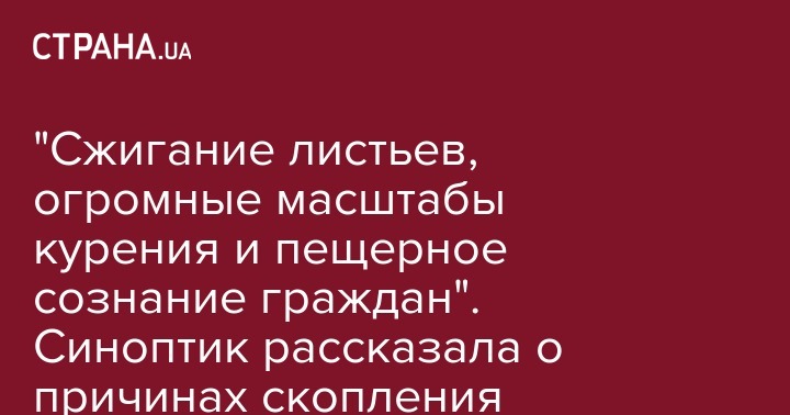 "Сжигание листьев, огромные масштабы курения и пещерное сознание граждан". Синоптик рассказала о причинах скопления угарного газа в воздухе над Украиной