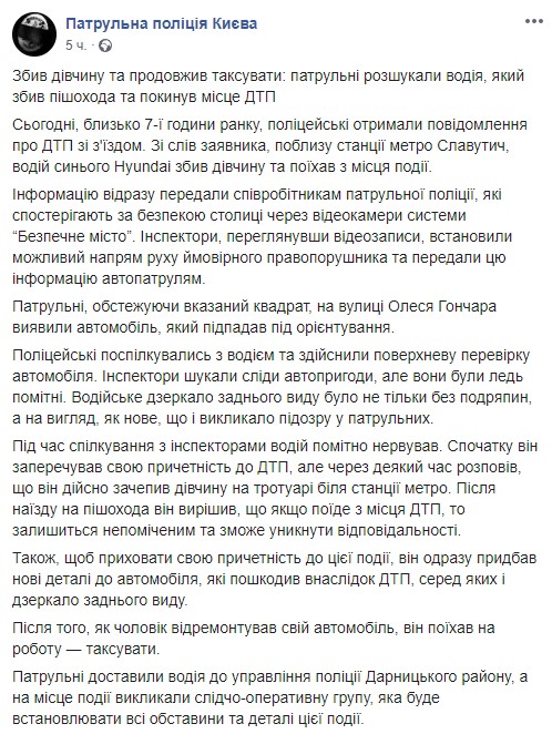 Скриншот: Facebook/Патрульна поліція Києва