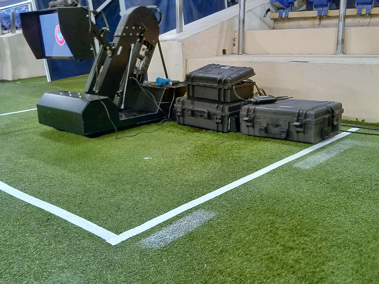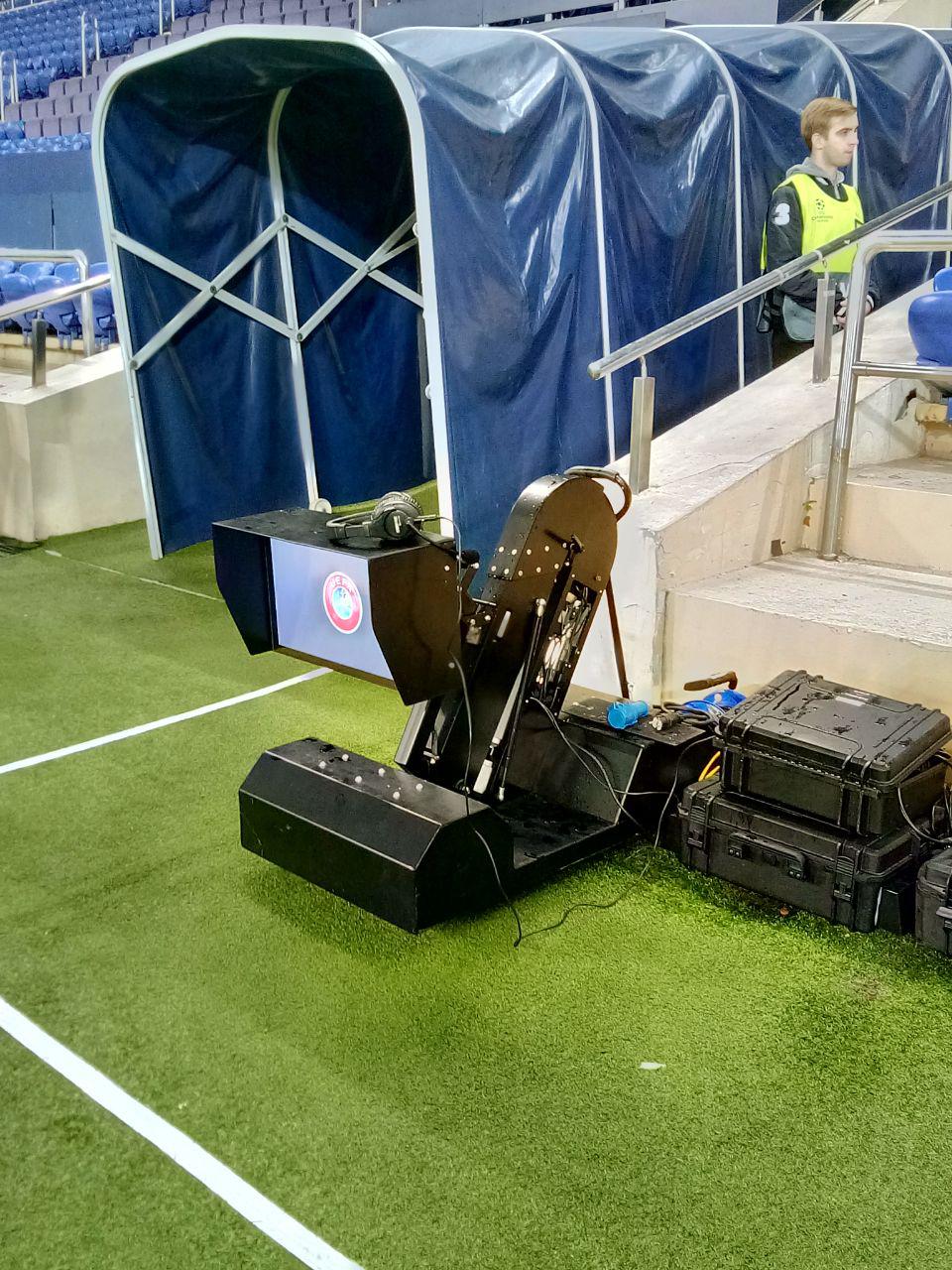 По габаритам она напоминает персональный компьютер (ПК) и размещается практически на поле. Главная часть системы скрыта от обычных пользователей и размещена в подтрибунных помещениях.