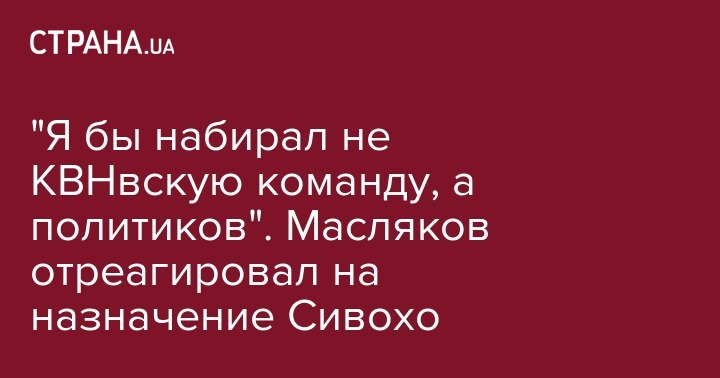 Президент Международного союза Клуба веселых и находчивых (КВН) Александр Масляков  прокомментировал то, что украинского шоумена и бывшего игрока КВН Сергея Сивохо назначили советником секретаря Совета национальной безопасности и обороны (СНБО) по вопросам реинтеграции и восстановления Донбасса. Об этом он рассказал "Комсомольская правда".