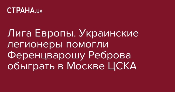 Лига Европы. Украинские легионеры помогли Ференцварошу Реброва обыграть в Москве ЦСКА