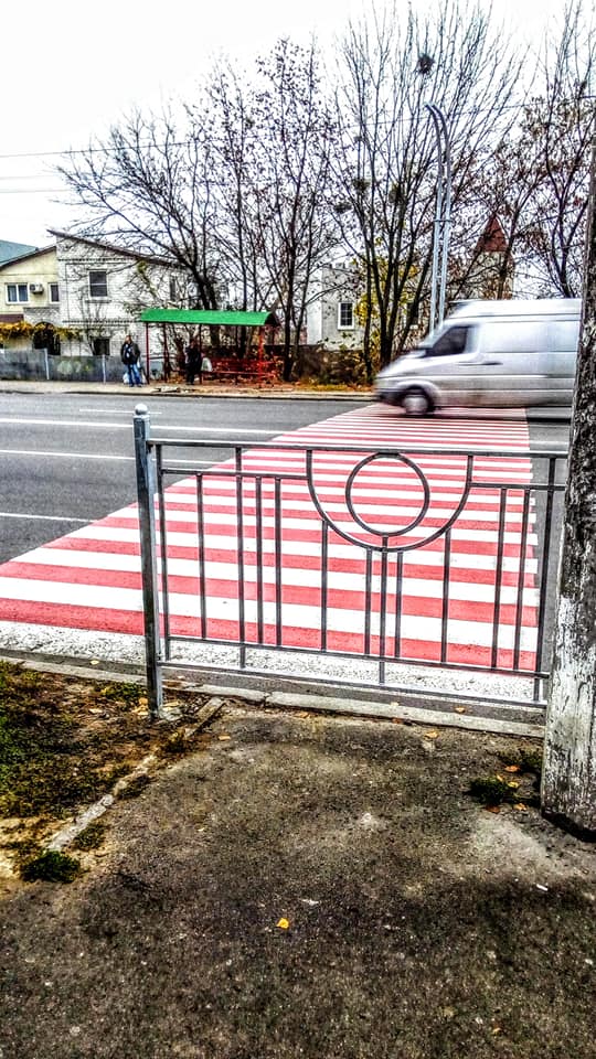 В Киеве на проспекте Отрадный коммунальные службы установили ограду прямо перед пешеходным переходом, частично перегородив его.