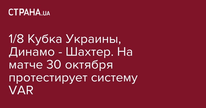 1/8 Кубка Украины, Динамо - Шахтер. На матче 30 октября протестирует систему VAR