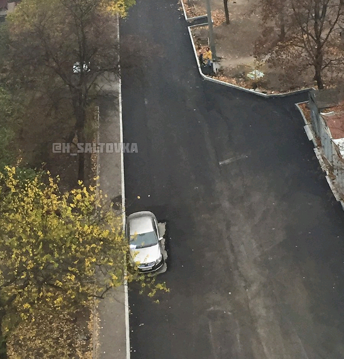 В спальном районе Харькова водитель оставил автомобиль на ремонтируемом участке улицы, и дорожники положили асфальт вокруг него. Об этом передает сообщество "Х@@вая Салтовка" в Twitter.