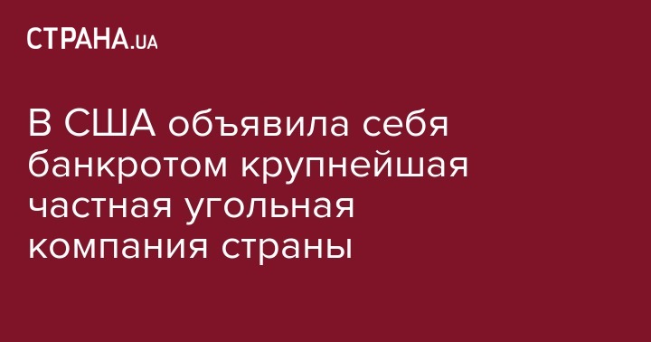 Американский угольный гигант Murray Energy Corp. объявил себя банкротом на фоне продолжающегося падения спроса на уголь, пишет Интерфакс.
