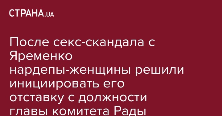 После секс-скандала с участием нардепа из фракции "Слуги народа" Богдана Яременко, который во время заседания Рады договаривался об интиме за деньги, депутаты-женщины намерены инициировать его отставку с должности главы комитета по иностранным делам. Об этом пишет "Интерфакс-Украина"