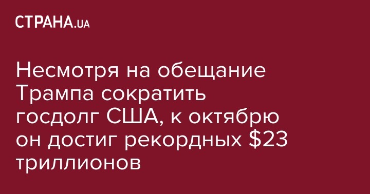 Несмотря на обещание Трампа сократить госдолг США, к октябрю он достиг рекордных $23 триллионов