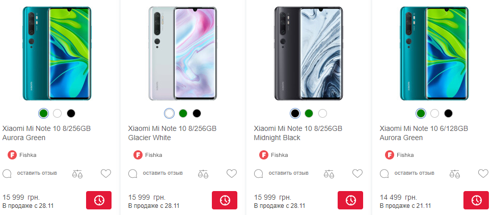 Ожидается, что в украинских магазинах средние цены будут отличаться от официальных на 5-7 тыс грн. Стоимость Mi Note 10 із 6/128 Гб будет примерно 15 120 грн; Mi Note 10 Pro с 8/256 Гб - 17 880 грн.