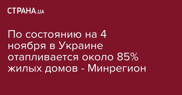 По состоянию на 4 ноября в Украине отапливается около 85% жилых домов - Минрегион