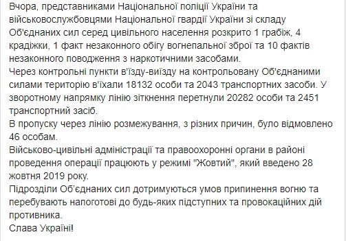 Напомним, в первый день ноября в зоне ООС зафиксировано 13 обстрелов за сутки. В Петровском их не было.