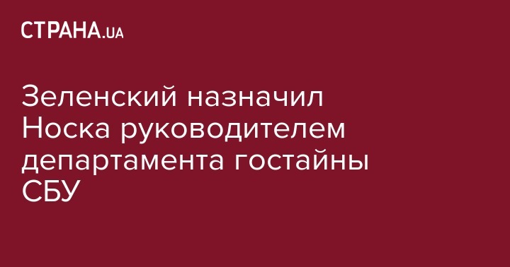 Президент Украины Владимир Зеленский назначил Игоря Носка начальником Департамента охраны государственной тайны и лицензирования Службы безопасности Украины (СБУ). Об этом говорится на сайте главы государствы.