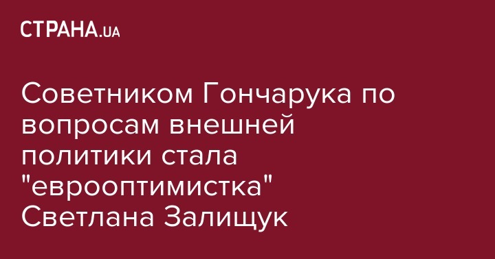 Бывшая депутат Верховной Рады Украины от БПП, участник группы еврооптимистов Светлана Залищук начала работать на должности штатного советника премьер-министра Алексея Гончарука по вопросам внешней политики.