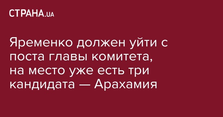 Арахамия считает, что Яременко должен уйти с должности председателя международного комитета, но остаться его членом, так как имеет большой дипломатический опыт.