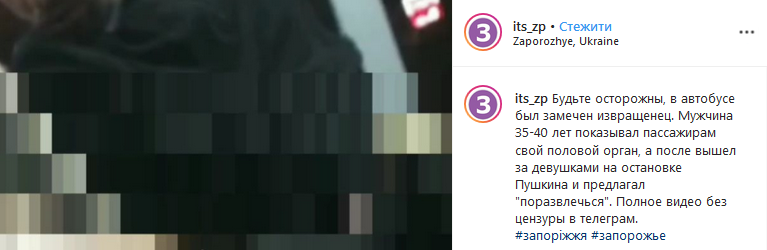 В Запорожье произошел очередной вопиющий случай. Здесь извращенец, нисколько не стесняясь, приставал к девушкам прямо в общественном городском транспорте. Неизвестный мужчина продемонстрировал им прямо в салоне автобуса свои гениталии.