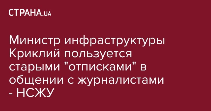 Новый министр инфраструктуры Владислав Криклий для общения с журналистами использует "отписки" предшественников. Об этом сообщил глава Национального союза журналистов Украины Сергей Томиленко на своей странице в Facebook.