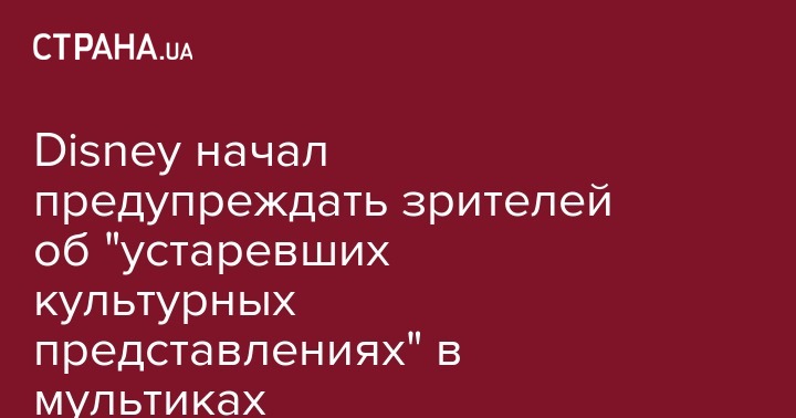 Стриминговый сервис Disney+ перед просмотром некоторых старых мультфильмов от Disney теперь показывает зрителям предупреждение о том, что в мультфильмах могут быть изображены устаревшие культурные представления ("it may contain outdated cultural depictions"). Об этом сообщает Афиша.Daily.