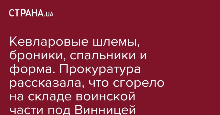 Кевларовые шлемы, броники, спальники и форма. Прокуратура рассказала, что сгорело на складе воинской части под Винницей