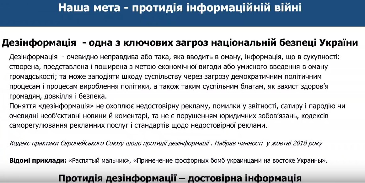 Как пример дезинформации привели "распятого мальчика" и "применение фосфорных бомб украинцами на востоке Украины".