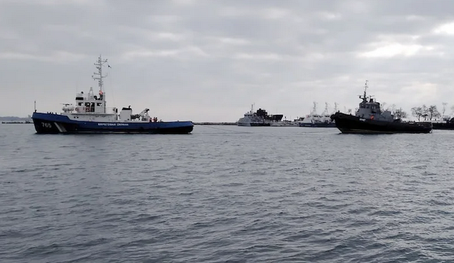 Украинские корабли покидают порт Керчи, фото: kommersant.ru