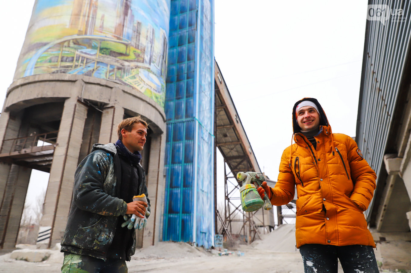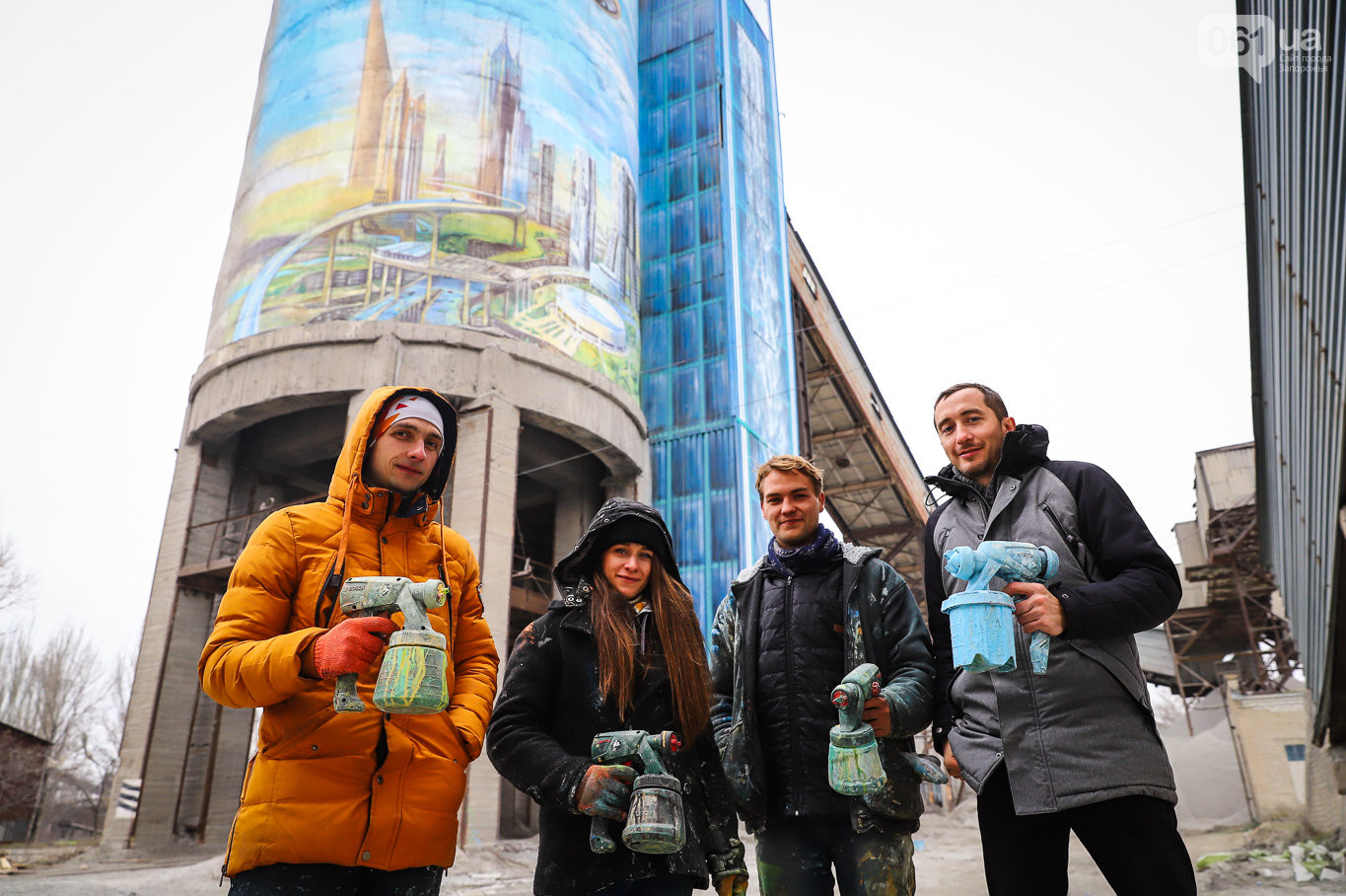 В Запорожье на территории Мокрянского каменного карьера создали крупнейший мурал Украины под названием "Город будущего", над которым три художника трудились около месяц, потратив 20 кг краски. Картина разместилась на бетонных бочках высотой 32 метра и диаметром 11,5 метров, сообщает 061.ua.