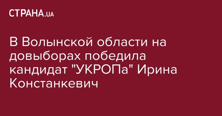 В Волынской области на промежуточных выборах в ВР в округе №23  подсчитали 100% протоколов победу. Большинство здесь получила кандидат от политпартии "УКРОП" Ирина Констанкевич. Соответствующая информация обнародована на официальном сайте ЦИК, сообщает УНН.