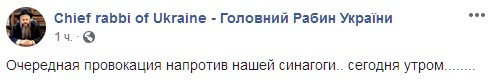 "Очередная провокация напротив нашей синагоги... сегодня утром", - сказал он.