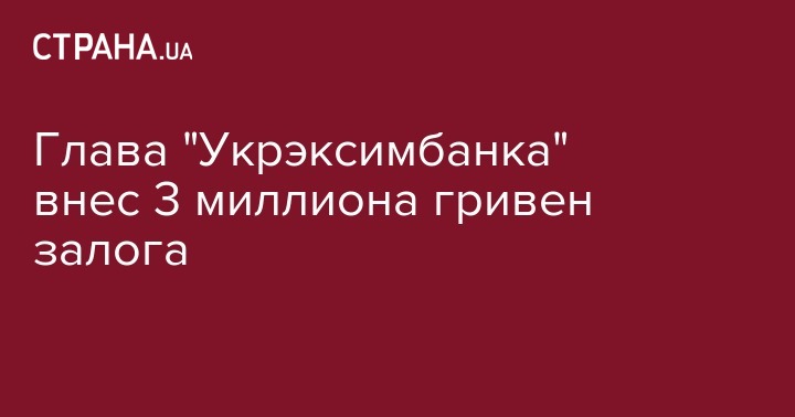 Председатель правления "Укрэксимбанка" Александр Гриценко внес залог в размере 3 млн гривен, размер которого 18 ноября определил Печерский суд Киева. Об этом сообщают "Українські Новини" со ссылкой на адвоката Дениса Демина.
