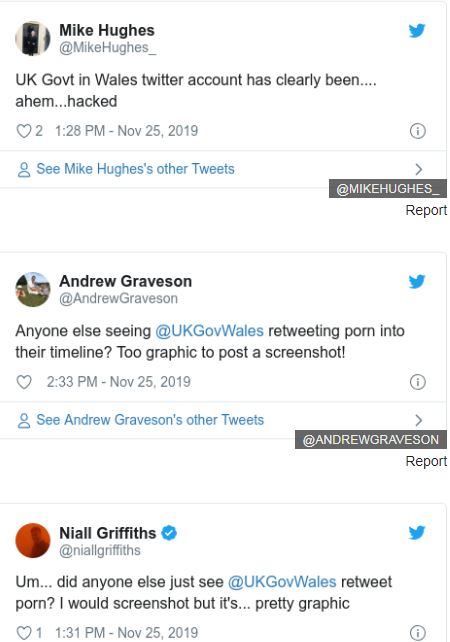 Два порнографических ролика появились на странице представительства британского правительства в Уэльсе в соцсети Twitter. Видео оказалось ретвитом с другого аккаунта, пишет BBC.