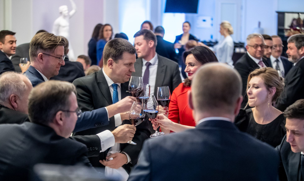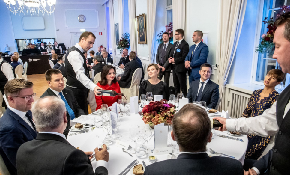 Вечером во вторник, 26 ноября, во время визита в Эстонию президент Украины Владимир Зеленский в Национальной опере "Эстония" побывал на торжественном ужине с президентом Эстонии Керсти Кальюлайд и ее супругом Рене Максимовским. Фото с ужина публикует издание Postimees.