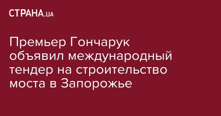 Премьер-министр Украины Алексей Гончарук заявил об объявлении международного тендера на строительство моста в Запорожье. Об этом сообщает пресс-служба Кабинета министров Украины.