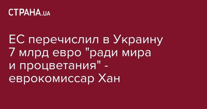 ЕС перечислил в Украину 7 млрд евро "ради мира и процветания" - еврокомиссар Хан