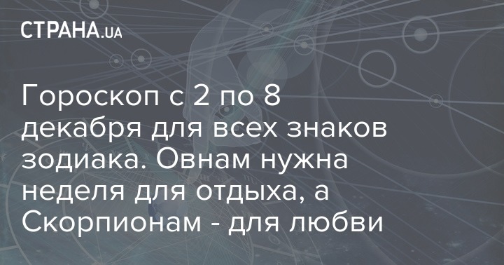 "Страна" публикует гороскоп для всех знаков зодиака на эту неделю, со 2 декабря по 8 декабря.
