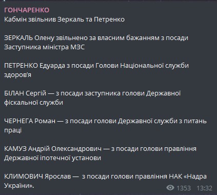 - Петренко Олега – с должности главы Национальной службы здоровья;