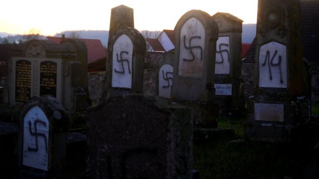 Северо-восточный регион Франции Эльзас, расположенный на границе с Германией, был отмечен рядом антисемитских актов за последние месяцы. Главный раввин Гаим Корсия сказал, что он был "возмущен и в ужасе, когда узнал об осквернении еще одного кладбища в Эльзасе".