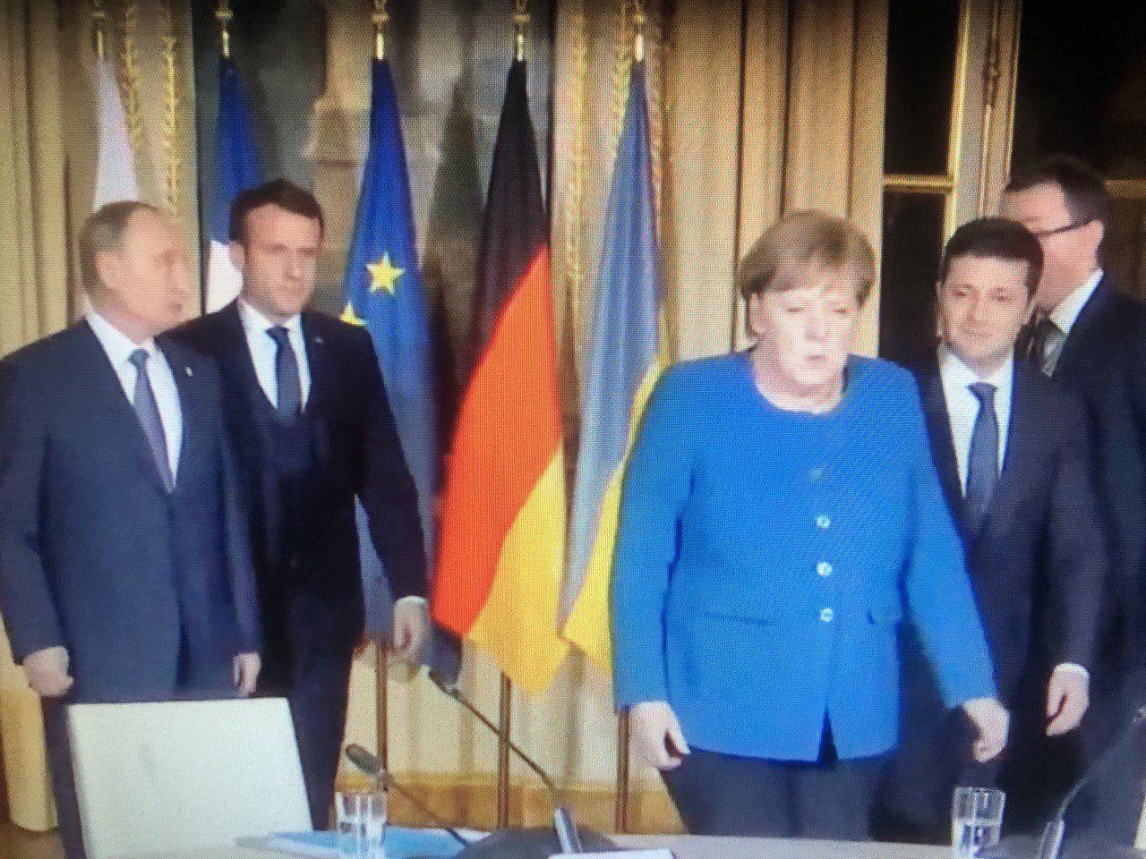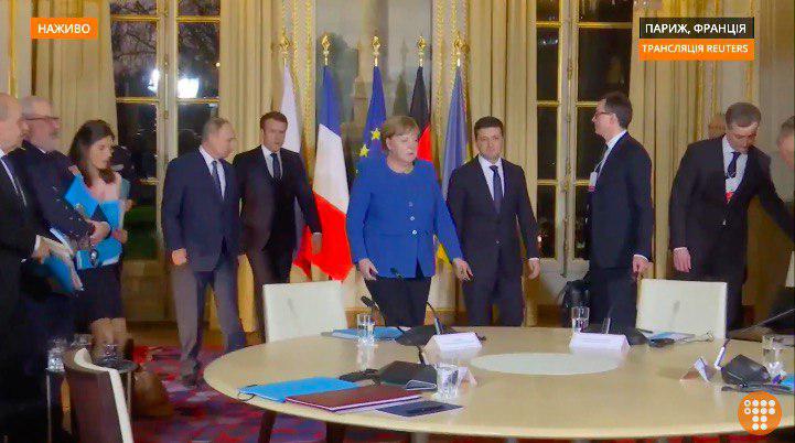 Общая встреча началась в 18:20 по киевскому времени с задержкой на 1 час 20 минут. До этого Зеленский провел беседу с президентом Франции Эммануэлем Макроном, затем с канцлером ФРГ Ангелой Меркель. После саммита "четверки", на которую отведено порядка трех часов, ожидается встреча Зеленского с Путиным, сообщили в Офисе президента Украины.