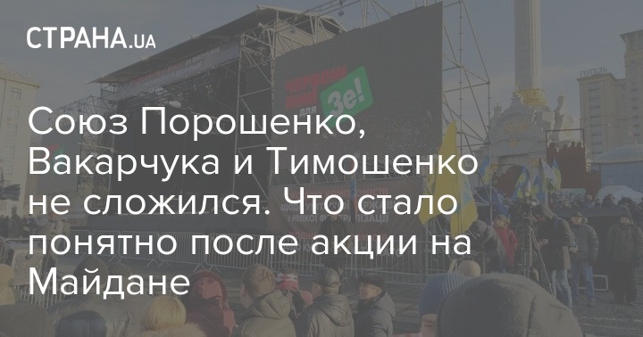Сегодня на Майдан вышло порядка двух тысяч человек - в основном активисты "Европейской солидарности". Поддержка от "Голоса" и "Батькивщины" оказалась призрачной - от обеих партий выступили по одному второстепенному депутату. На сцене не было ни Вакарчука, ни Тимошенко. И, судя по соцсетям, их вообще не было на акции (хотя Порошенко и говорил, что "Славко" где-то в толпе).