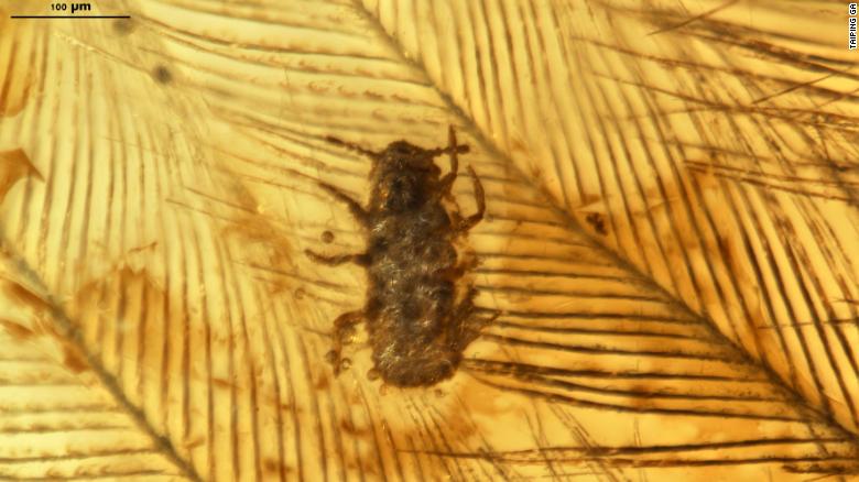 Палеонтологи обнаружили в куске янтаря ранее неизвестных насекомых, похожих на современных вшей, вместе с пером динозавра. Описание находки представлено в журнале Nature Communications.
