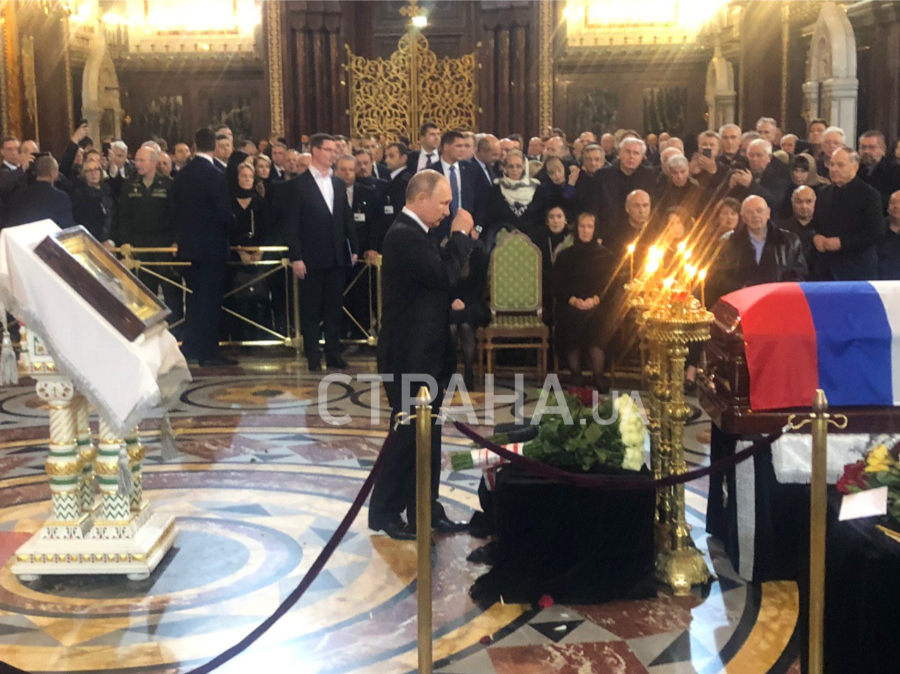10:17 Патриарх Кирилл начал отпевание. Оно может продлиться несколько часов. Президент России Владимир Путин на этот момент не приезжал.