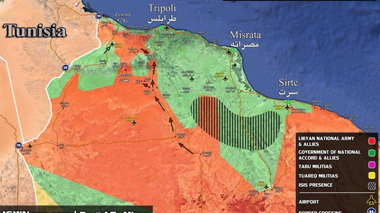 После разрушения в Ливии Джамахирии, а также свержения и убийства ее лидера Муаммара Каддафи в 2011 году в ходе операции НАТО это африканское государство оказалось раздроблено и вошло в череду междоусобных войн. Основная борьба за власть идет между парламентом и ЛНА Халифы Хафтара (ОАЭ, Египет) с одной стороны и правительством Сараджа, поддерживаемого Турцией и Европейским Союзом.