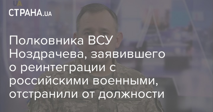 Начальника Управления гражданско-военного сотрудничества Вооруженных сил Украины (ВСУ) Алексея Ноздрачева отстранили от должности из-за слов о возможности очень быстро реинтегрироваться с военными с неподконтрольного Донбасса. Об этом сообщили в Военной службе правопорядка.