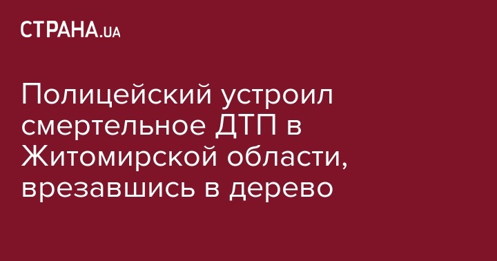 Сегодня, 14 декабря, на трассе в Житомирской области в дерево на автомобиле Volkswagen Passat врезался полицейский: один человек погиб, другой пострадал. Об этом сообщается на официальном сайте  Государственного бюро расследований.