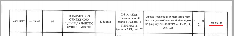 Так, деньги были оправлены на счет принадлежащего Вакарчуку ООО "Суперсимметрия". Платеж был оформлен как оплата по лицензионному договору за использование прав интеллектуальной собственности на музыкальные произведения.