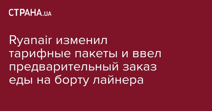 Ryanair изменил тарифные пакеты и ввел предварительный заказ еды на борту лайнера