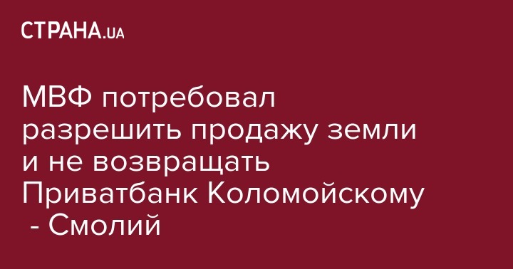 МВФ потребовал разрешить продажу земли и не возвращать Приватбанк Коломойскому - Смолий