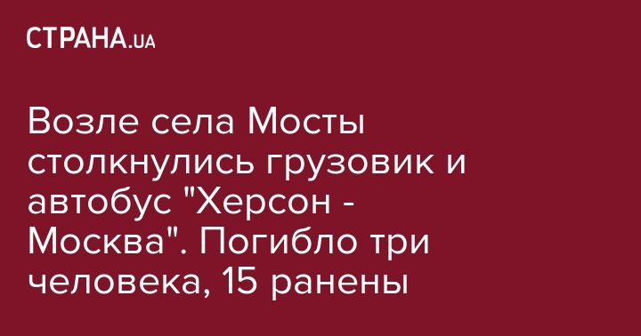 "16 декабря в 22:40 вблизи села Мосты Бахмачского района произошло столкновение грузового автомобиля и пассажирского автобуса сообщением Херсон - Москва, в результате чего погибли 3 человека и 15 госпитализированы с травмами различной степени тяжести. Подразделения ГосЧС привлекались для деблокирования пострадавших", - уточнили в пресс-службе спасателей.