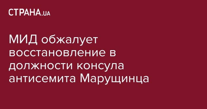 Тогда Марущинец обжаловал решение суда первой инстанции в Шестом апелляционном админсуде. А тот по результатам пересмотра дела возобновил дипломата-антисемита в должности и обязал МИД выплатить последнему сумму среднего заработка за время вынужденного прогула.