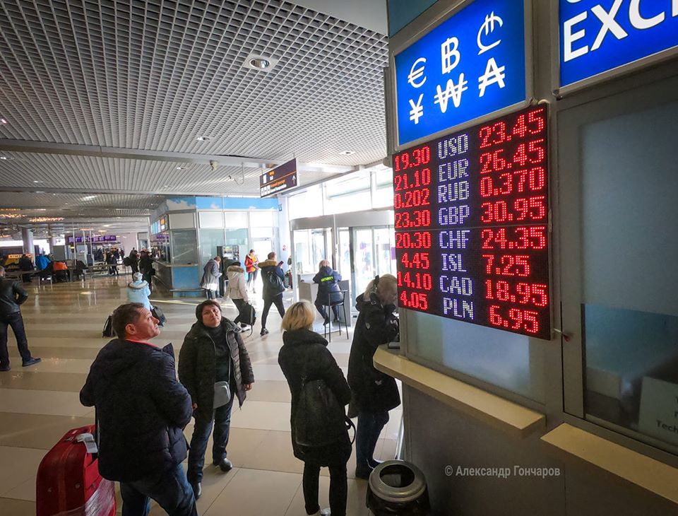 По рекордно низкой цене скупает валюту у приезжих обменник в международном аэропорту "Борисполь". На это обратил внимание пользователь Facebook Александр Гончаров, который опубликовал на своей странице в соцсети подтверждающее этот факт фото.