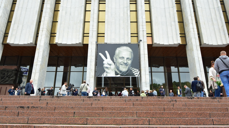 Сегодня в Киеве прощаются с журналистом Павлом Шереметом. Церемония проходит в "Украинском доме". В зале стоит микрофон, перед которым может выступить любой из пришедших проститься с журналистом.