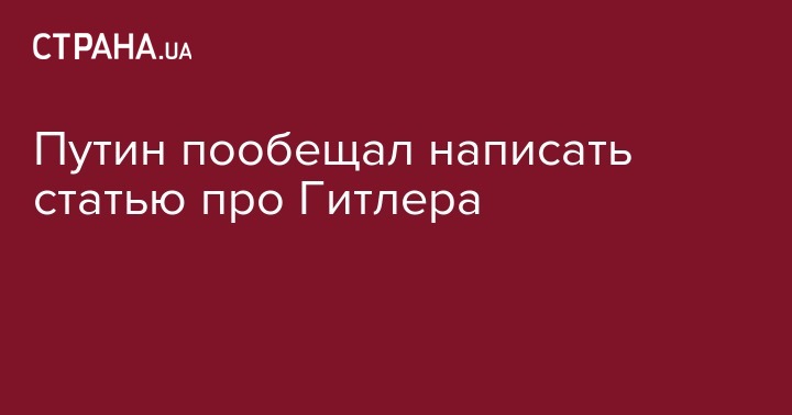 В частности, Владимир Путин анонсировал выпуск статьи про лидера Третьего рейха Адольфа Гитлера.
