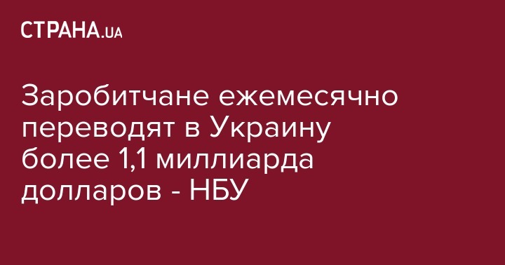 Денежные поступления в Украину, которые Национальный банк трактует как оплату труда за границей, ежемесячно составляют 1,12-1,17 млрд долларов. Об этом сообщает Экспертная платформа Национального банка на своей странице в соцсети.